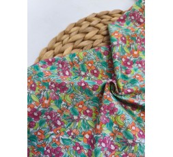 TEJIDO SEERSUCKER DE FONDO BLANCO, CON RAYAS HORIZONTALES ESTRECHAS, DE COLOR VERDE Y ROSA, EN TONOS PASTEL. ES FINO, BLANDO Y SUAVE. TIENE 140CM...