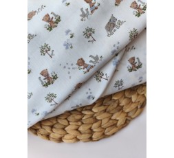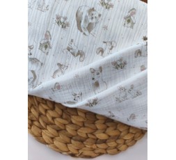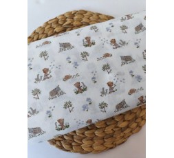 POPELÍN DE ALGODÓN BLANCO CON ARDILLAS Y CONEJOS, EN ROSA, VERDE Y GRIS. ES UN ALGODÓN BLANDO, CÓMODO, FRESCO Y TRANSPIRABLE. APENAS TRANSPARENTA....