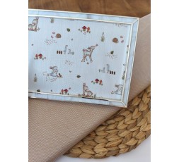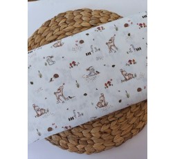 TEJIDO DE ESPIGUILLA DE FONDO BLANCO ROTO TIERNOS CERVATILLOS COMO PROTAGONISTAS. EL DIBUJO MÁS GRANDE MIDE 30MM. ES UNA TELA SUAVE AL TACTO Y...