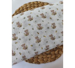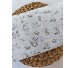 BAMBULA DE ALGODÓN EN BLANCO ROTO CON ANIMALES EN MARRÓN SECO. COMO ES PROPIO DEL TEJIDO TIENE UN LIGERO EFECTO ARRUGADO. ES UNA TELA DE TACTO...