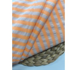 POPELIN CON RAYAS VERTICALES DE 3MM ALTERNANDO COLOR MARFIL Y SALMÓN. LLEVA ESTAMPADOS RAMILLETES EN VERDE, CORAL Y CAMEL. ES UN TEJIDO BLANDO,...