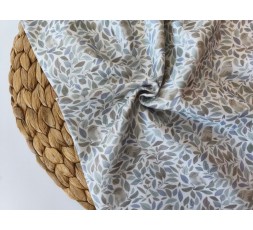 VIYELA DE ALGODÓN ORGÁNICO EN BLANCO ROTO, ESTAMPADO CON DISCRETOS PÁJAROS EN COLOR PIEDRA, Y HOJAS EN GRIS, AZUL Y VERDE SECO. SU REVÉS ES LISO. ES UNA TELA OTOÑAL, CÁLIDA Y CÓMODA, DE TACTO SUAVE MUY AGRADABLE. TIENE 145CM DE ANCHO. GRAMAJE 135G/M2.