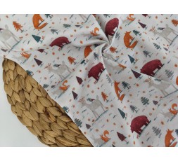 POPELÍN DE ALGODÓN DE FONDO BEIGE CON ANIMALES SALVAJES EN PETRÓLEO, NARANJA Y GRANATE. ES UNA TELA MUY SUAVE DE TACTO ATERCIOPELADO MUY AGRADABLE. EL DIBUJO MÁS ALTO MIDE 32MM. SU REVÉS ES LISO. TIENE 145CM DE ANCHO. GRAMAJE 115G/M2.