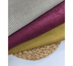 TELA DE PANA COLOR TOPO. ESTE TEJIDO FORMA RAYAS VERTICALES EN RELIEVE, DE 4MM DE ANCHO. ES SUAVE Y BLANDO, DE GROSOR MEDIO. EL INTERIOR ES SUAVE Y LISO. TIENE 150CM DE ANCHO. GRAMAJE 280G/M2.
