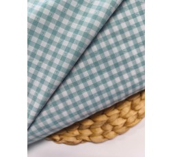 TEJIDO VICHY, VERDE AGUA Y BLANCO, CON MOTA DE PLUMETTI EN COLOR. ES UN TEJIDO LIGERO, CON UNA CAÍDA Y UN MOVIMIENTO PRECIOSO, DEBIDO A LA VISCOSA. ES UNA TELA MUY FRESCA Y CÓMODA. EL CUADRO MIDE 6MM. SU REVÉS ES ESTAMPADO. TIENE 145CM DE ANCHO. GRAMAJE 90GR/M2.