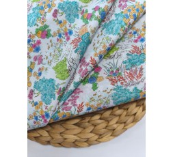 TEJIDO DE BATISTA, DIBUJADO CON SIMPLES ESTANQUES DE JARDÍN, VEGETACIÓN Y FLORES EN COLORES FUERTES Y LLAMATIVOS, LO QUE LA CONVIERTE EN UNA TELA FRESCA Y VERANIEGA. ES LIGERO, SUAVE Y SEMITRANSPARENTE, IDEAL PARA PRENDAS SENCILLAS. TIENE 145CM DE ANCHO. GRAMAJE 102GR/M2.