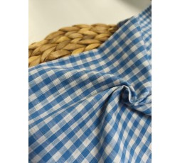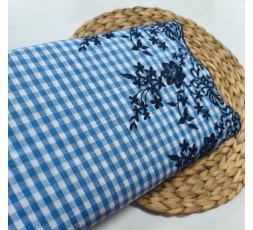 TELA DE VICHY EN AZUL Y BLANCO, DE 6MM DE TAMAÑO, BORDADO EN SUS ORILLOS. EN UNO, LLEVA UNA CENEFA DE 18CM DE ANCHO, CON FLORES EN AZUL MARINO, Y EN EL OTRO VA REMATADO CON ONDAS. ES UN TEJIDO BLANDO Y SUAVE. TIENE 133CM DE ANCHO. GRAMAJE 100GR/M2.