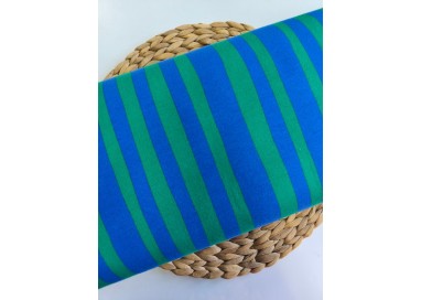 TEJIDO SEERSUCKER FORMANDO RAYAS EN VERTICAL RESPECTO AL ORILLO DE LA TELA, EN AZUL Y BLANCO. LAS RAYAS MIDEN 3MM DE ANCHO. ES UN TEJIDO BLANDO,...