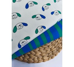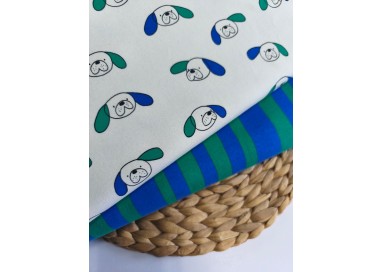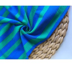 TEJIDO DE POPELIN EXTRA SUAVE DE FONDO BLANCO, CON RAYAS EN SENTIDO HORIZONTAL DEL TEJIDO, EN AMARILLO Y DOS TONALIDADES DE AZUL. ES UN TEJIDO FINO...