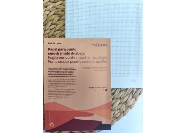 PAPEL CON PAUTAS REGULARES DE PUNTOS, PARA TRANSFERIR SOBRE LA TELA A BORDAR CON LA AYUDA DE UNA PLANCHA (CALIENTE, SIN VAPOR Y SIEMPRE POR EL REVÉS DEL TEJIDO). LAS HILERAS PARALELAS DE PUNTOS SON IMPRESCINDIBLES PARA FRUNCIR EL TEJIDO Y DESPUÉS PODER BORDAR CON TODA FACILIDAD.